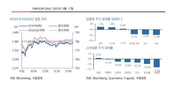 16์ผ(๋ชฉ) ๊ตญ๋ด์ฆ์๋ SVB, SC ์ฌํ ์ฐ๋ ค๋ก 1% ๋๋ ๊ธ๋ฝ์ธ๋ฅผ ๋ณด์ด๊ธฐ๋ ํ์ผ๋, ์ค์ ์ค ์ค์์ค ์ค์์ํ์ 500์ตํ๋(71์กฐ์)๊ท๋ชจ์ ์ ๋์ฑ ๊ณต๊ธ ๊ฒฐ์ ๋ณด๋์ ๋ํญ ์ถ์ํ ์ฑ ๋ง๊ฐ. (KOSPI -0.08%, KOSDAQ +0.1%). ๊ธ์ผ ์ญ์ ์๋ฐ๋ฅธ ์ํ๊ถ ์๊ธฐ ๋์์ฑ ์ ํ์ ์ด ๋ฐ๋ฑํ ๋ฏธ ์ฆ์ ์ํฅ์ ์ง์ ํ๋จ์ ์ ํ๋๋ ๋์์ RSI ์งํ์ 1์ ๋ง ์ดํ ๋ํ๋ ๊ณผ์ด ์์์ ํด์ํ๋ ๊ตญ๋ฉด์ด ๋ํ๋ ๊ฒ์ผ๋ก ํ๋จ. ์ ์ข ๋จ์์๋ ๊ธ๋ฆฌ ๊ธ๋ฑ ๋ถ๋ด์ด ํด์๋ ๋์ค๋ฅ ์์ฃผ์ ๋ฐ๋ฑ์ธ, ์ ์ผ ์ผ์ฑ์ ์์ ๋ ์ธ๋ณด์ฐ๋ก๋ณดํฑ์ค ์ถ๊ฐ ์ง๋ถ์ธ์, 300์กฐ์ ๊ท๋ชจ์ ์ฉ์ธ ๋ฐ๋์ฒด ํด๋ฌ์คํฐ ์กฐ์ฑ ๊ณํ ๋ฑ์ ๋ด์ค ํ๋ก์ฐ๋ ์ฑ์ฅ์ฃผ์ ๊ธ์ ์ ์ธ ์ํฅ์ ๋ฏธ์น ๊ฒ์ผ๋ก ์์.